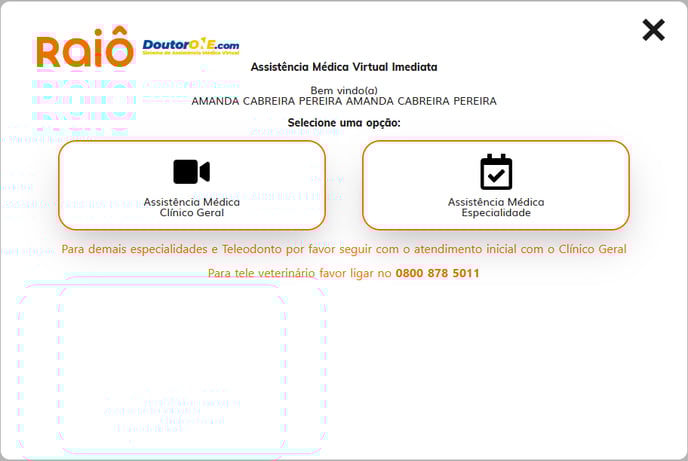 - Em seguida, você será direcionado a optar por um Clínico Geral ou escolher uma Especialidade